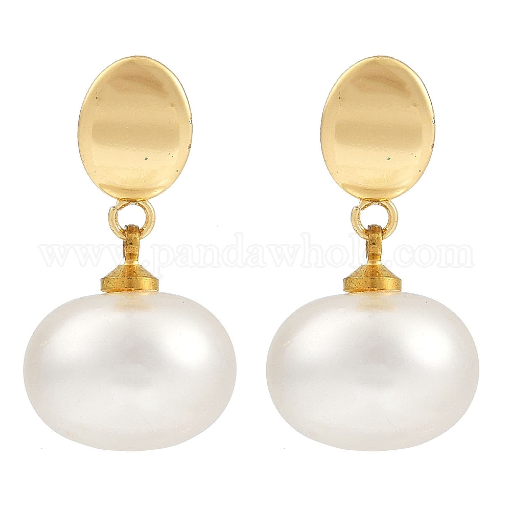 • Золотой 201 овальные серьги-гвоздики из нержавеющей стали, с пластиковыми бусинами из искусственного жемчуга, 304 штифт из нержавеющей стали, золотые, 25x13.5 мм