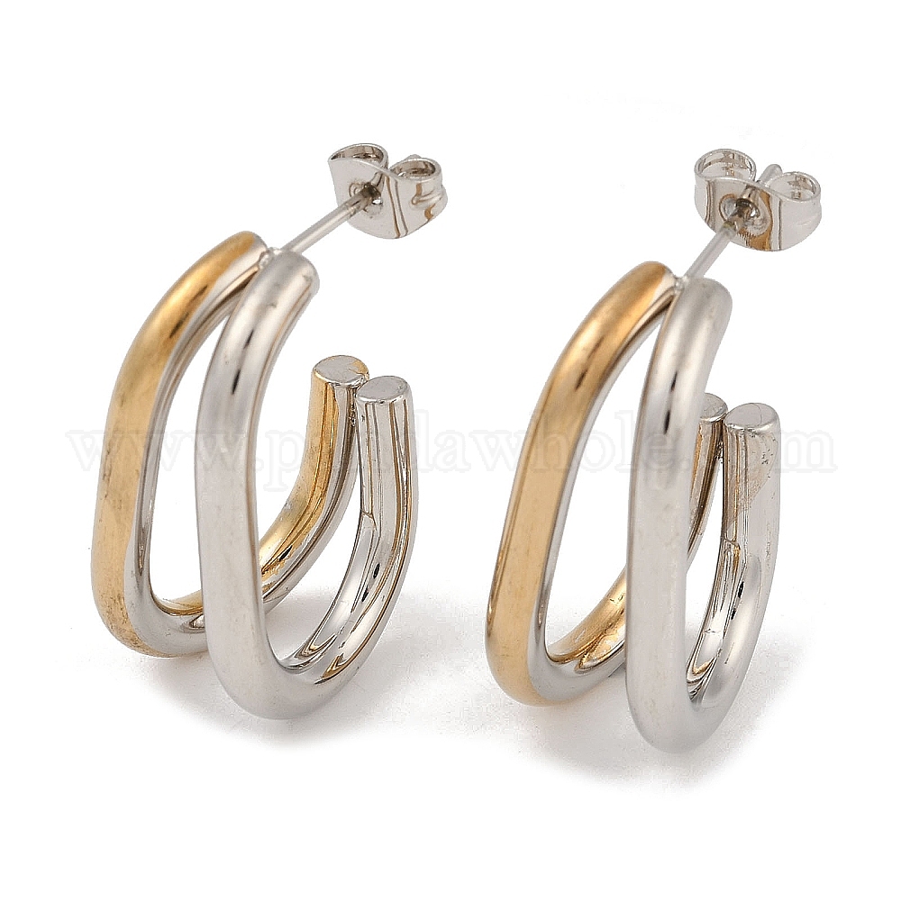 • Золотой & Цвет Нержавеющей Стали Вакуумное покрытие pvd 201 овальные серьги-гвоздики из нержавеющей стали, с 304 штифта из нержавеющей стали, золотые и нержавеющая сталь цвет, 27.5x11 мм