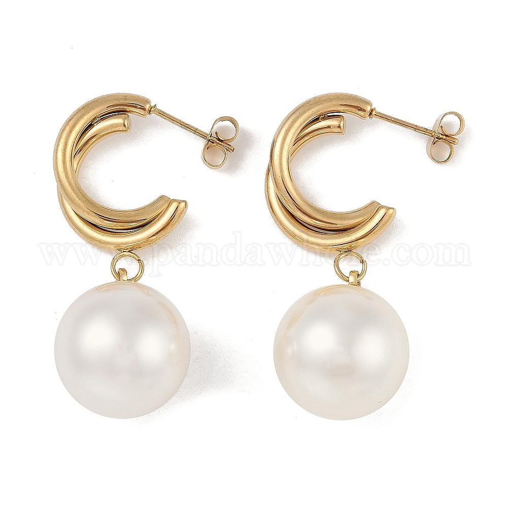Вакуумное покрытие pvd 201 серьги-гвоздики из нержавеющей стали, с пластиковыми бусинами из искусственного жемчуга, 304 штифт из нержавеющей стали