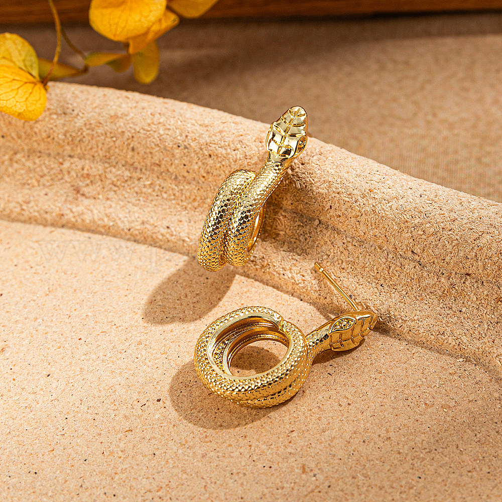 • Золотой Винтажные латунные серьги-гвоздики в форме змеи для женщин, золотые, 27x15 мм