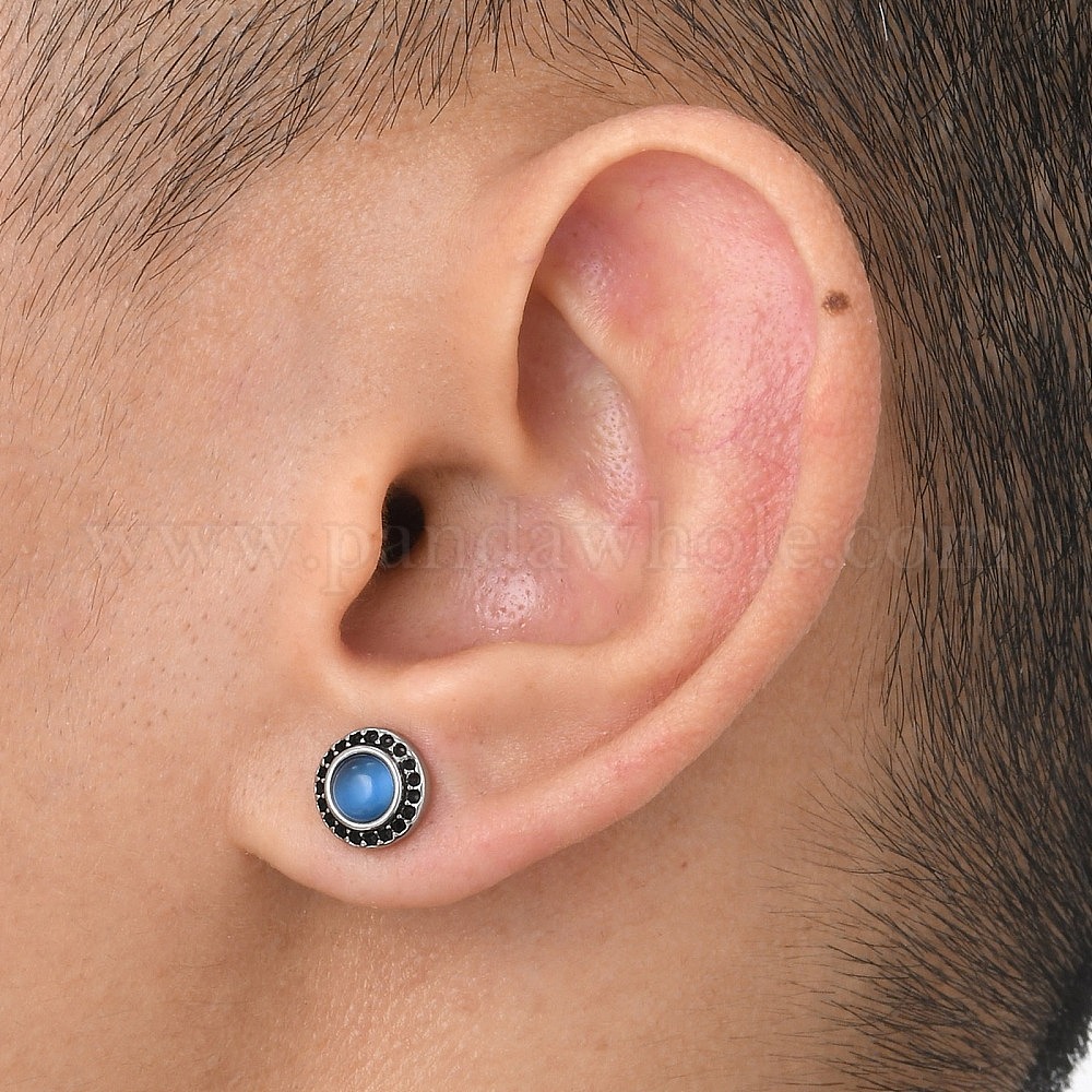 Серьги-гвоздики из нержавеющей стали с микропаве и цирконием, плоско-круглые
