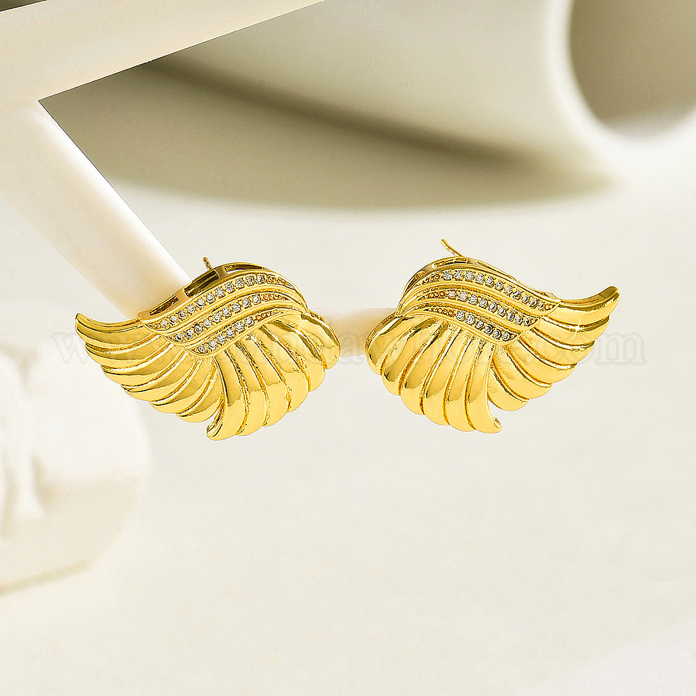 • Золотой Винтажные серьги-гвоздики в стиле панк из латуни с прозрачным кубическим цирконием в форме крыльев, дизайн для модных дам, золотые, 22x33 мм
