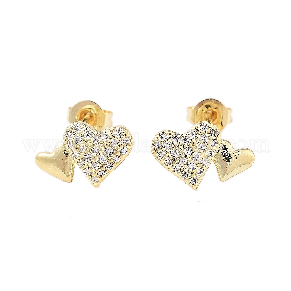 Серьги-гвоздики в форме сердца с микропаве из прозрачного кубического циркония из латуни для женщин