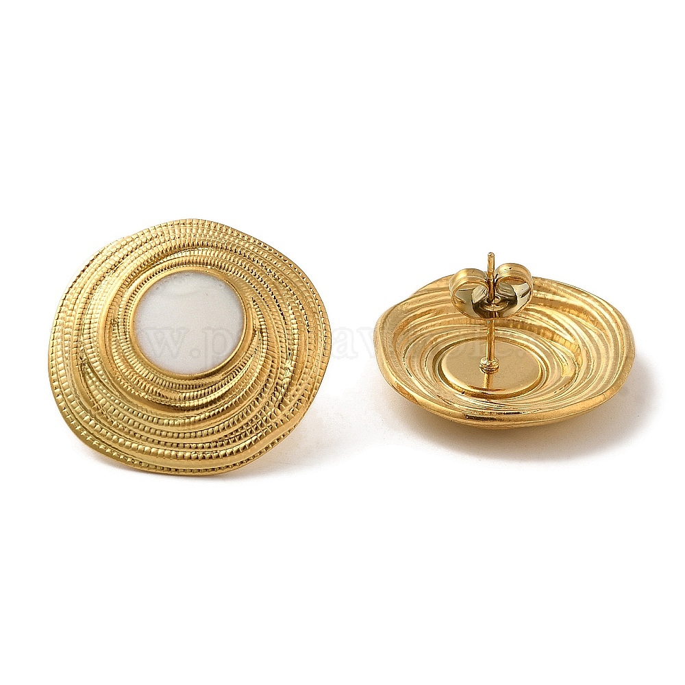 • Настоящее золото 18K Ионное покрытие (ip) 304 плоские круглые серьги-гвоздики из нержавеющей стали, с эмалью, реальный 18 k позолоченный, 22x22.5 мм
