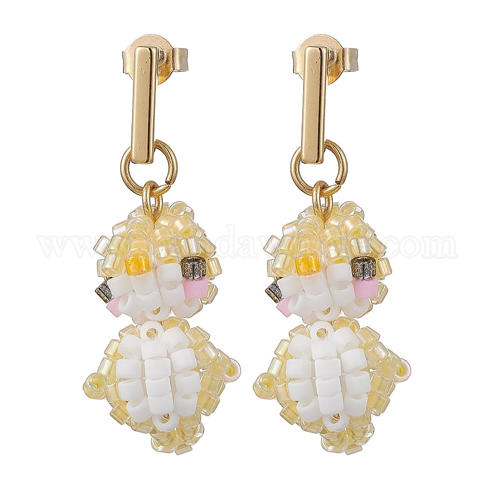 Стеклянные серьги, с 304 фурнитурой из нержавеющей стали, пингвин