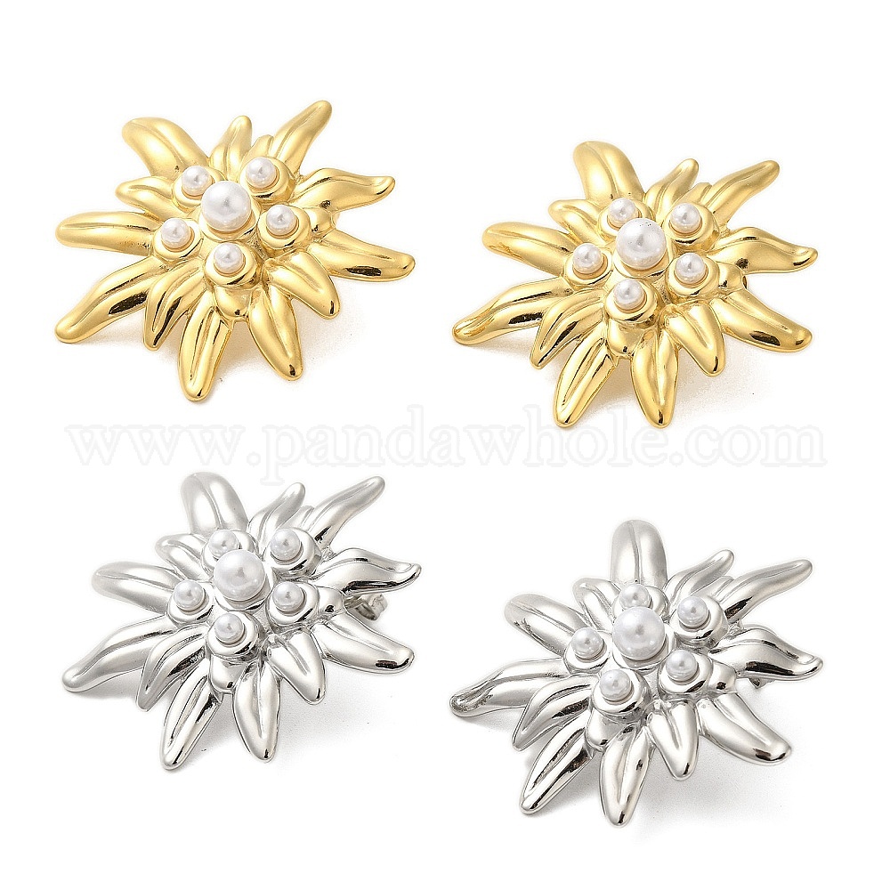 304 женские серьги-гвоздики с цветком из нержавеющей стали и жемчугом