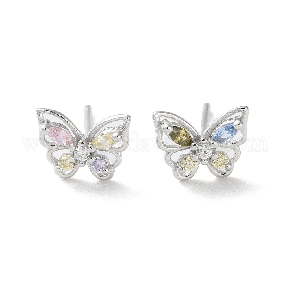 925 Серьги-гвоздики из стерлингового серебра с микропаве и прозрачным фианитом, бабочка