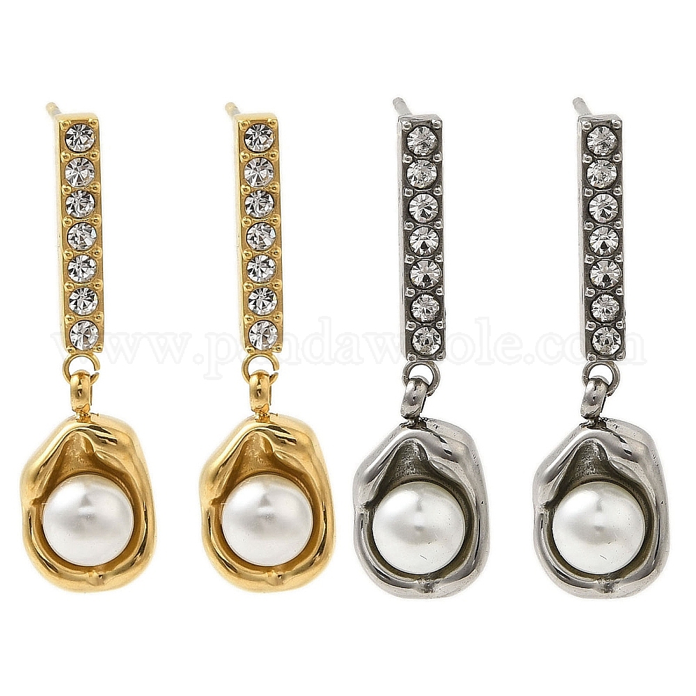 Ионное покрытие (ip) 304 серьги-гвоздики из нержавеющей стали со стразами и искусственным жемчугом для женщин
