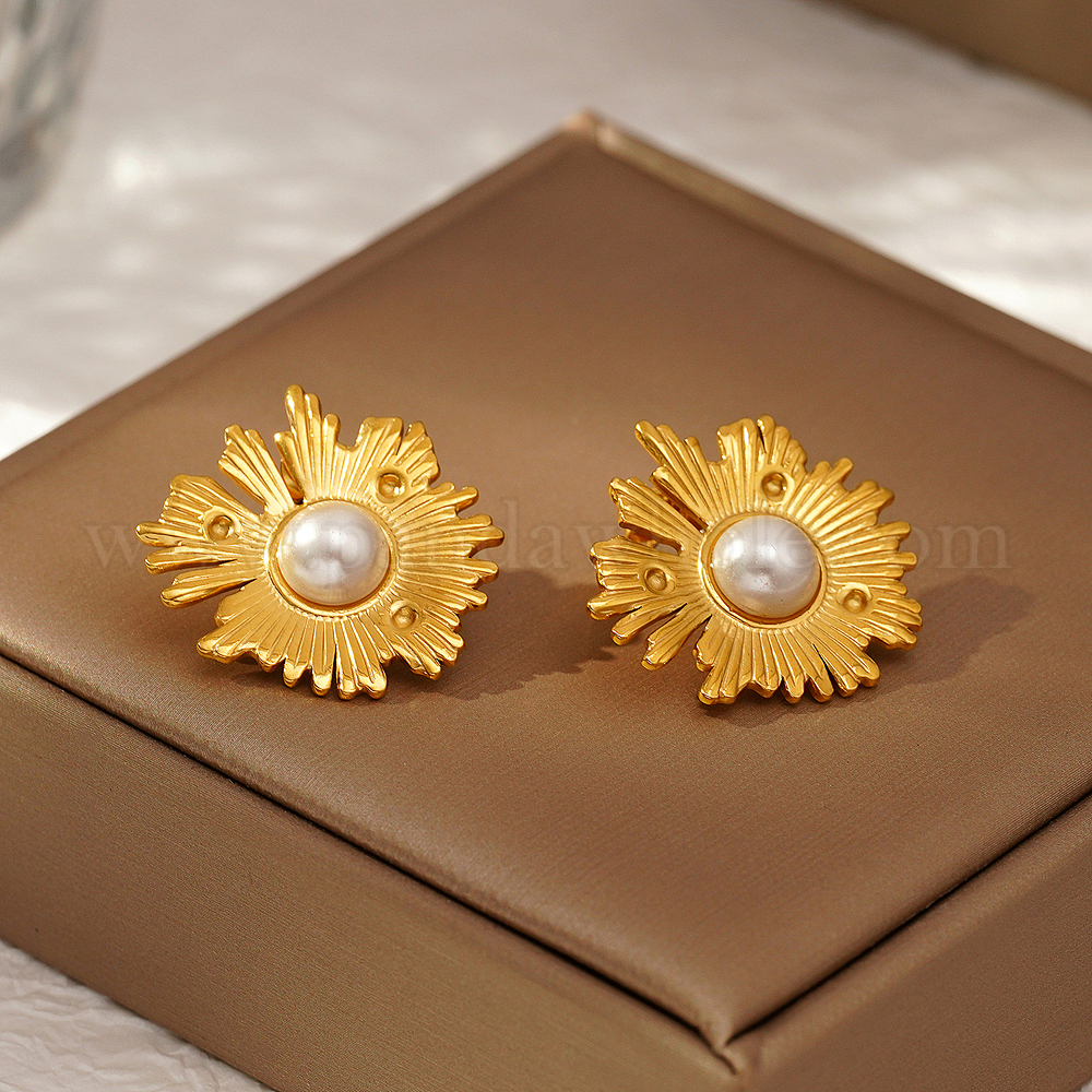 Стильные 304 серьги-гвоздики в форме цветка из нержавеющей стали для женщин на каждый день, с имитацией жемчуга