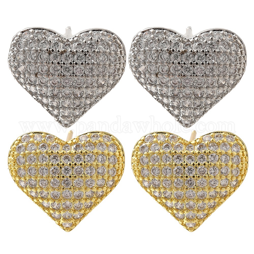 Серьги-гвоздики из латуни с покрытием в виде стойки с прозрачным фианитом в форме сердца, без свинца и без кадмия, долговечный (02XJ77)