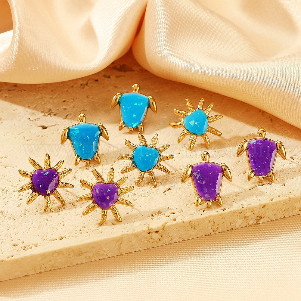 Серьги шпилька нержавеющая сталь, сердце/черепаха