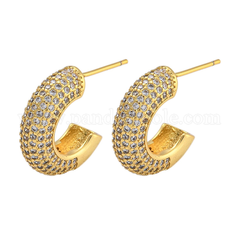 Серьги-гвоздики из латуни c-образной формы с микропаве и прозрачным фианитом, долговечный, без кадмия и без свинца