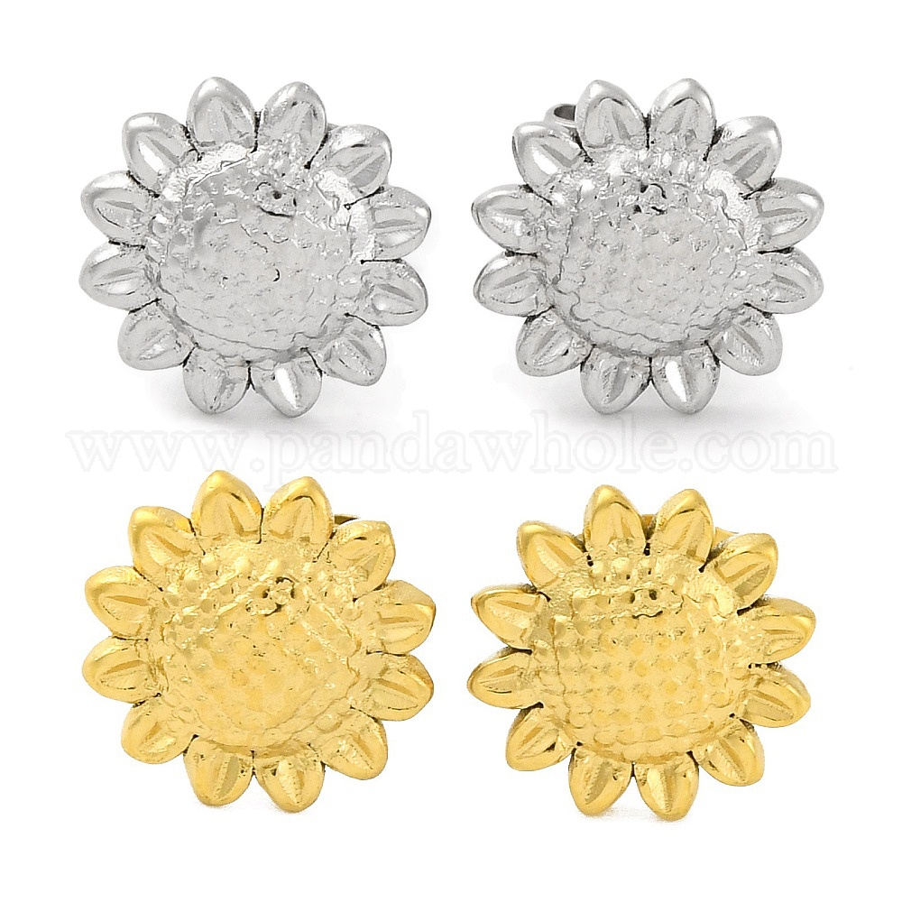 • Нержавеющая Сталь Цвет 304 серьги-гвоздики из нержавеющей стали в форме подсолнуха, цвет нержавеющей стали, 11.5x11.5 мм