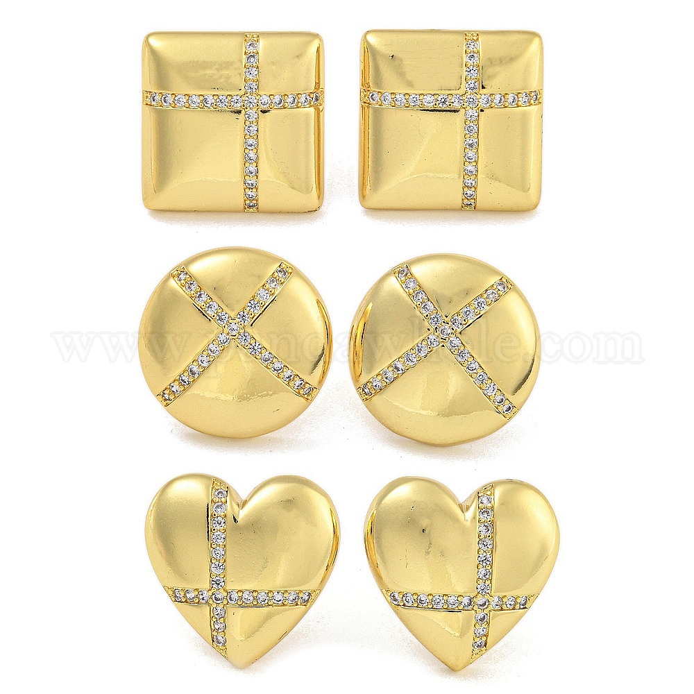 Серьги-пусеты из латуни с микропаве и прозрачным фианитом, без кадмия и без свинца