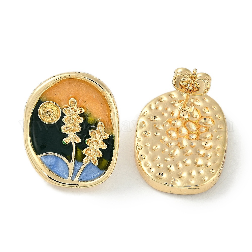 • Настоящее золото 18K Серьги-гвоздики из латуни, овальные, реальный 18 k позолоченный, 21x17 мм