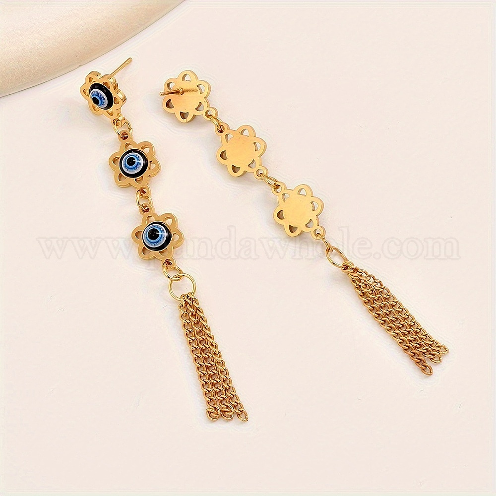 • Золотой Преувеличенные 201 серьги-гвоздики из нержавеющей стали от сглаза, винтажная кисточка подвеска модный подарок ювелирные изделия, золотые, 85 мм