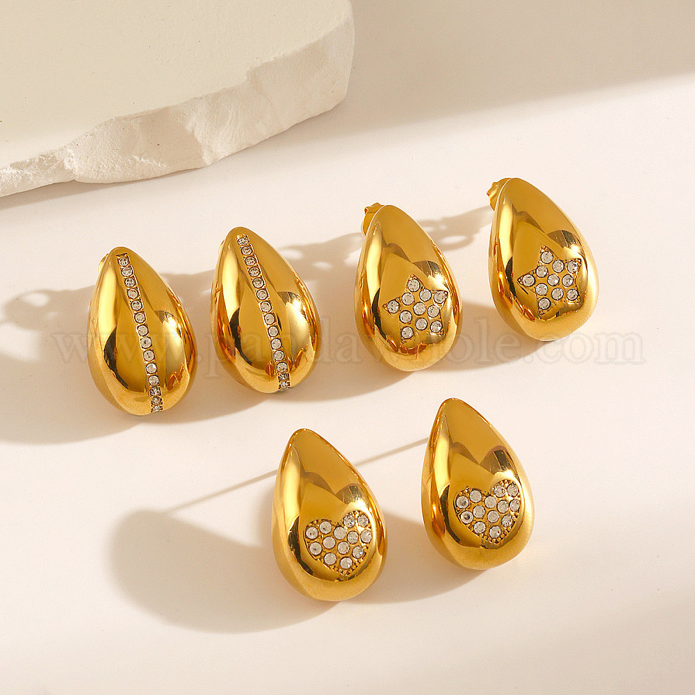 Серьги-гвоздики из нержавеющей стали с микропаве из прозрачных кубических цирконий для женщин, слеза, золотые