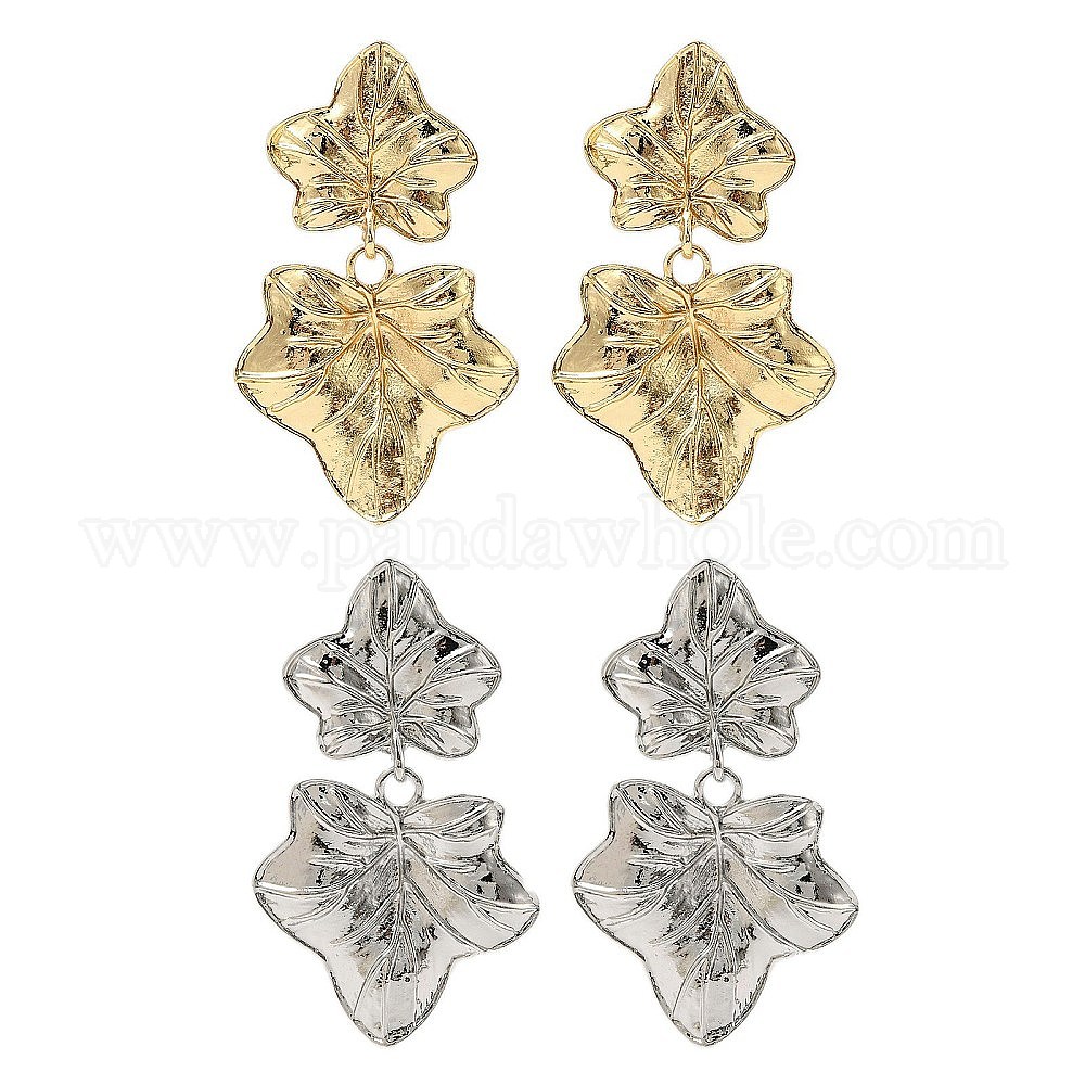 • Золотой Серьги-гвоздики из сплава в форме кленового листа, золотые, 52x31 мм