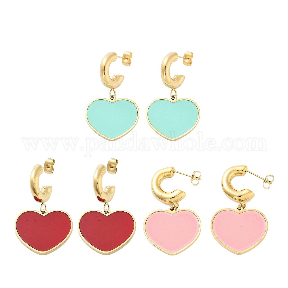 Ионное покрытие (ip) 304 серьги-гвоздики в форме сердца из нержавеющей стали, с эмалью для женщин, реальный 18 k позолоченный