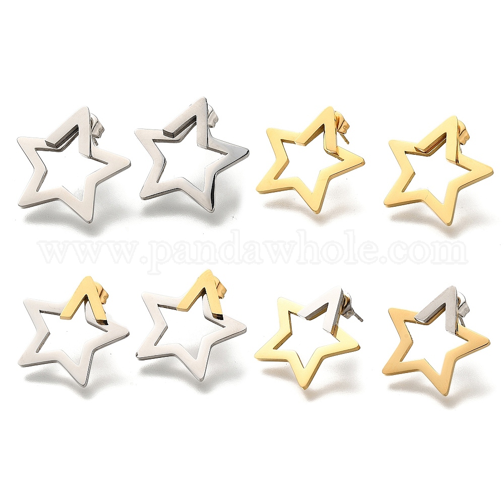 304 полые серьги-гвоздики из нержавеющей стали в форме звезды