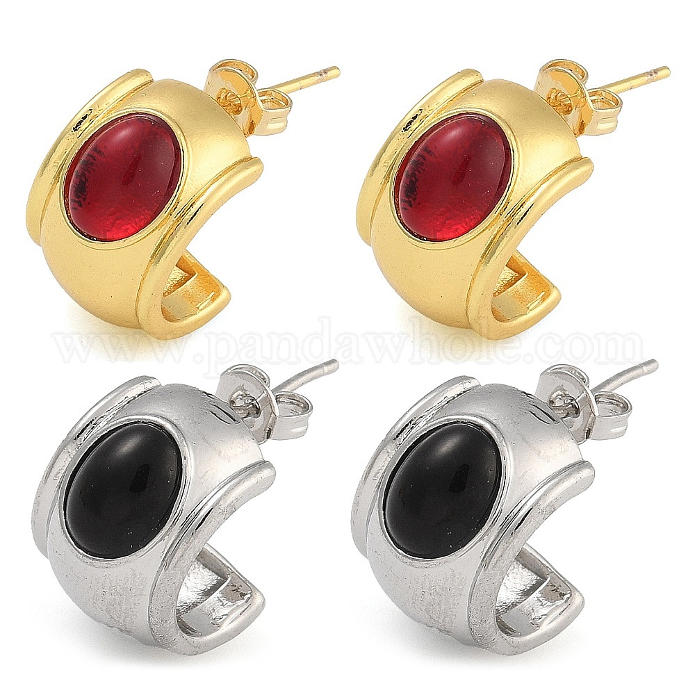 • Настоящее золото 18K Серьги-гвоздики из латуни и натурального агата в форме буквы С, реальный 18 k позолоченный, 15x10.5 мм