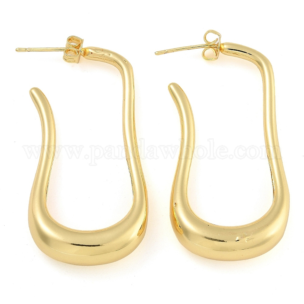 • Настоящее золото 18K Прямоугольные серьги-гвоздики из латуни, реальный 18 k позолоченный, 41.5x7 мм