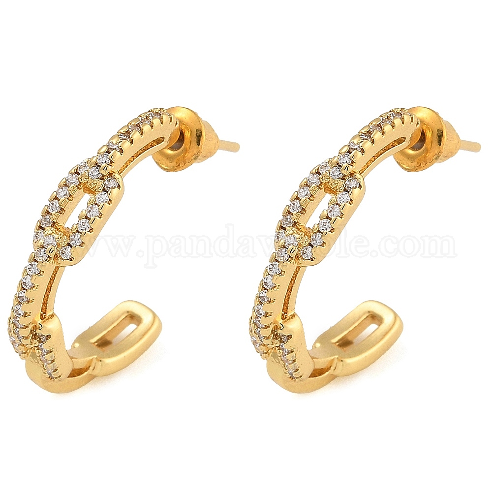 • Настоящее золото 18K Серьги-гвоздики из латунного микро-паве, цепочка-оберег, реальный 18 k позолоченный, 23x4 мм