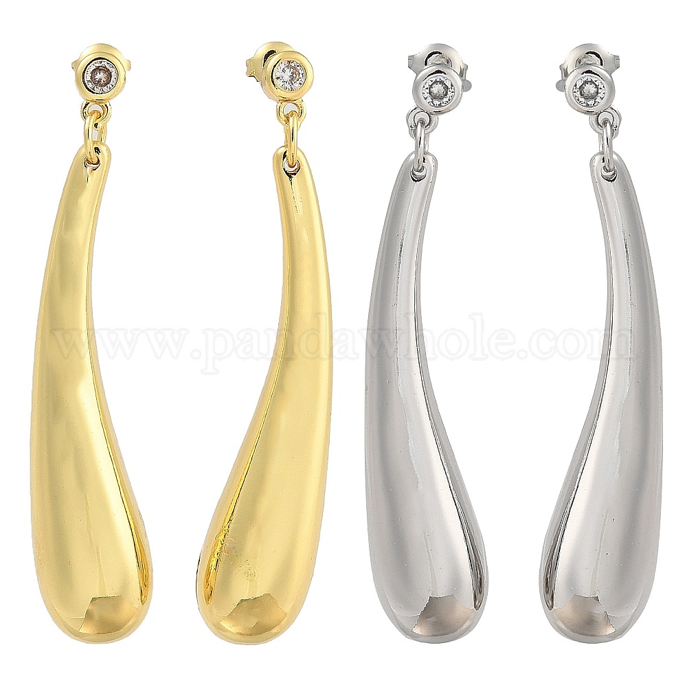 • Настоящее золото 18K Серьги-гвоздики в форме слезы с микропаве из кубического циркония из латуни, реальный 18 k позолоченный, 53x11 мм