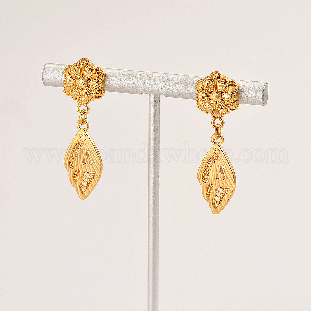 Серьги-гвоздики из сплава с подвеской в виде цветка и пера, модные серьги