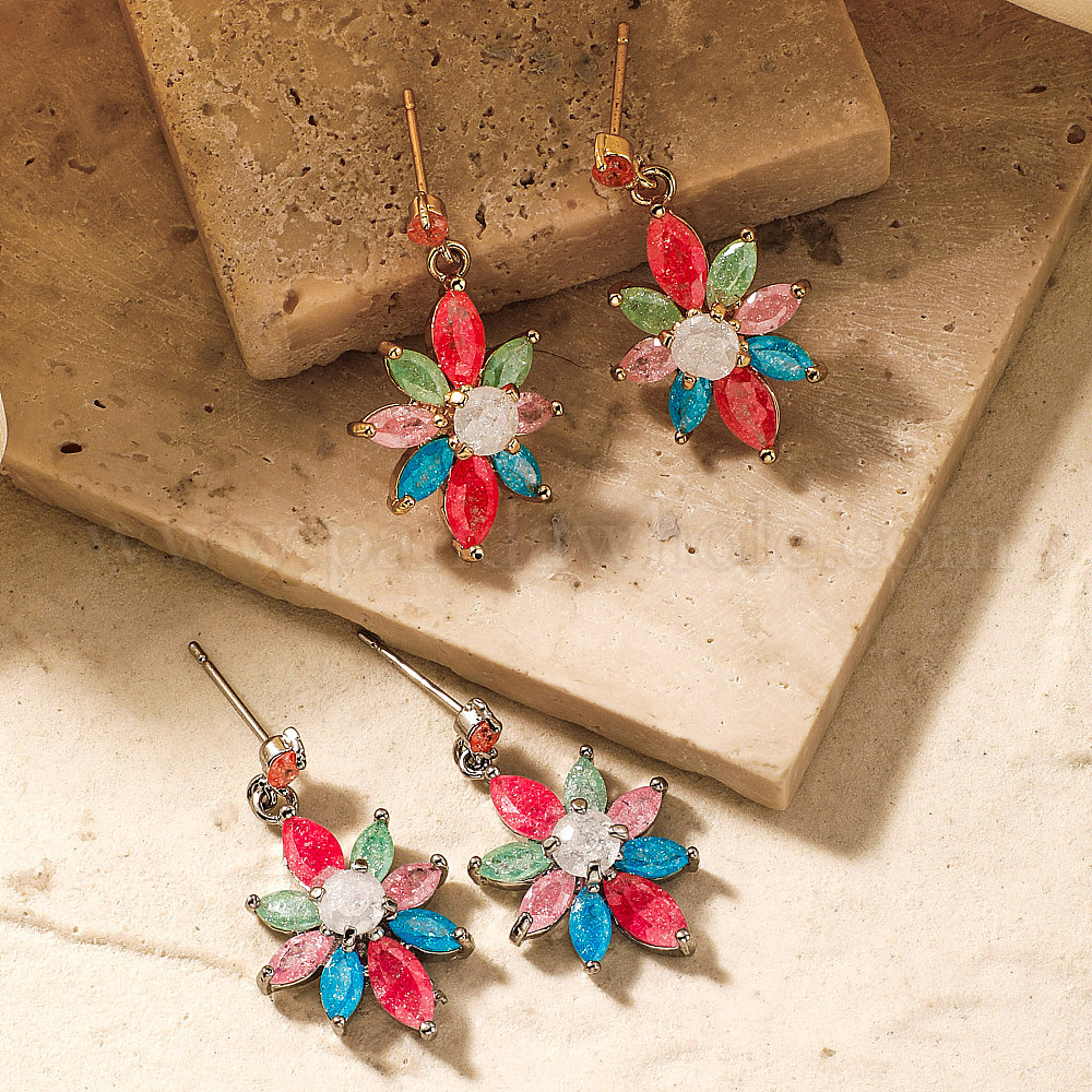 Романтические и элегантные красочные цветочные серьги-гвоздики из латуни для женщин, со стразами