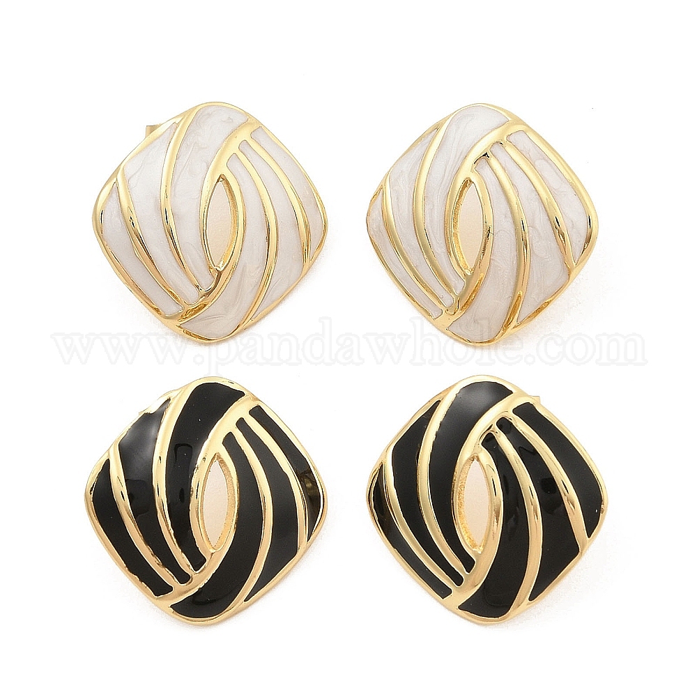 PVD вакуумное покрытие золото 304 серьги-гвоздики из нержавеющей стали для женщин, с эмалью, ромб
