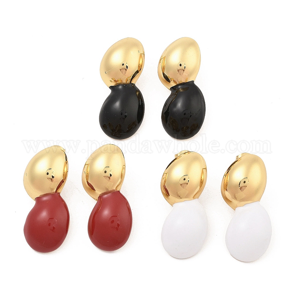 PVD вакуумное покрытие золото 304 серьги-гвоздики из нержавеющей стали для женщин, с эмалью, формы арахиса