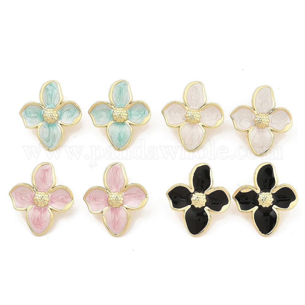 PVD вакуумное покрытие золото 304 серьги-гвоздики из нержавеющей стали для женщин, с эмалью, цветок