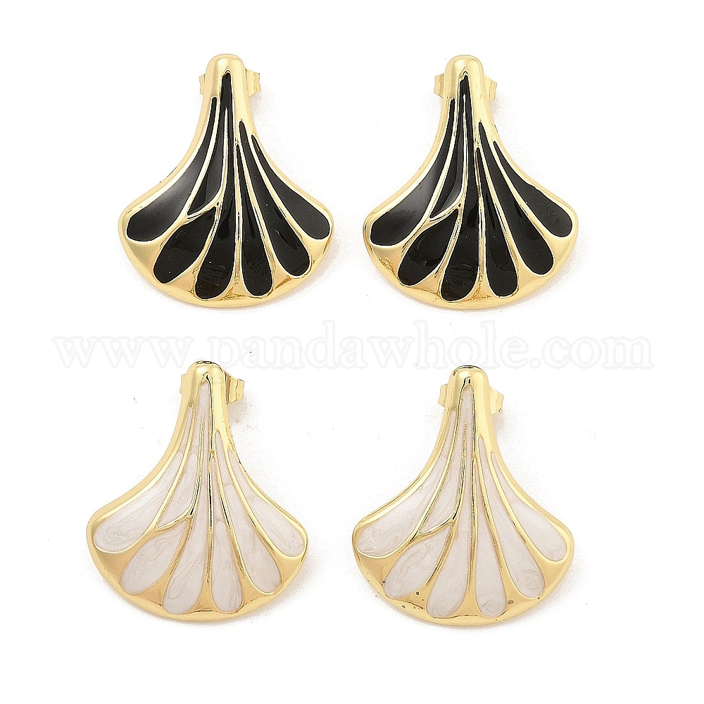 PVD вакуумное покрытие золото 304 серьги-гвоздики из нержавеющей стали для женщин, с эмалью, вентилятор