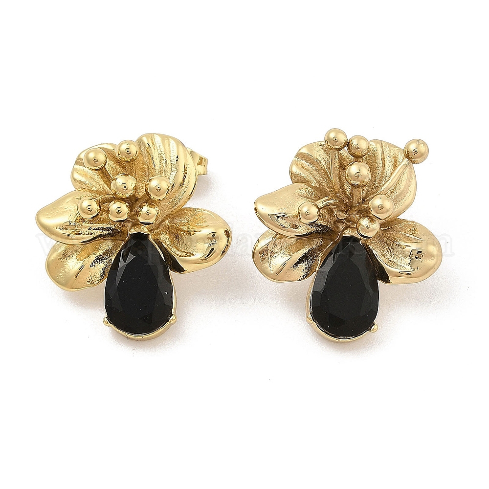 PVD вакуумное покрытие золото 304 серьги-гвоздики из нержавеющей стали для женщин, серьги-цветы со стразами (02Y6X8)