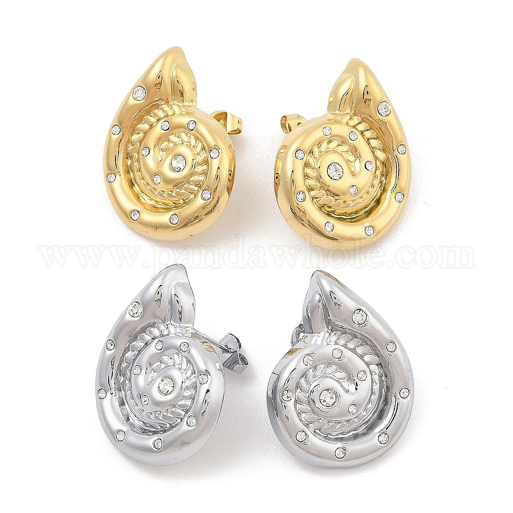 304 серьги-гвоздики из нержавеющей стали для женщин, серьги в форме ракушки со стразами