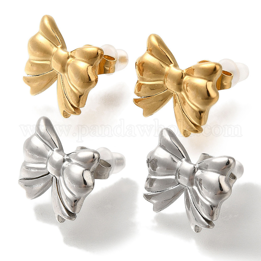 304 серьги-гвоздики из нержавеющей стали с бантом