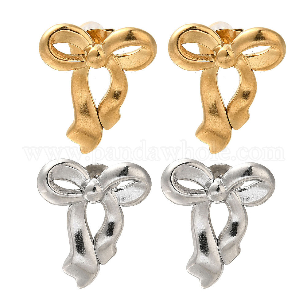 • Нержавеющая Сталь Цвет 304 серьги-гвоздики из нержавеющей стали с бантом, цвет нержавеющей стали, 18x16 мм