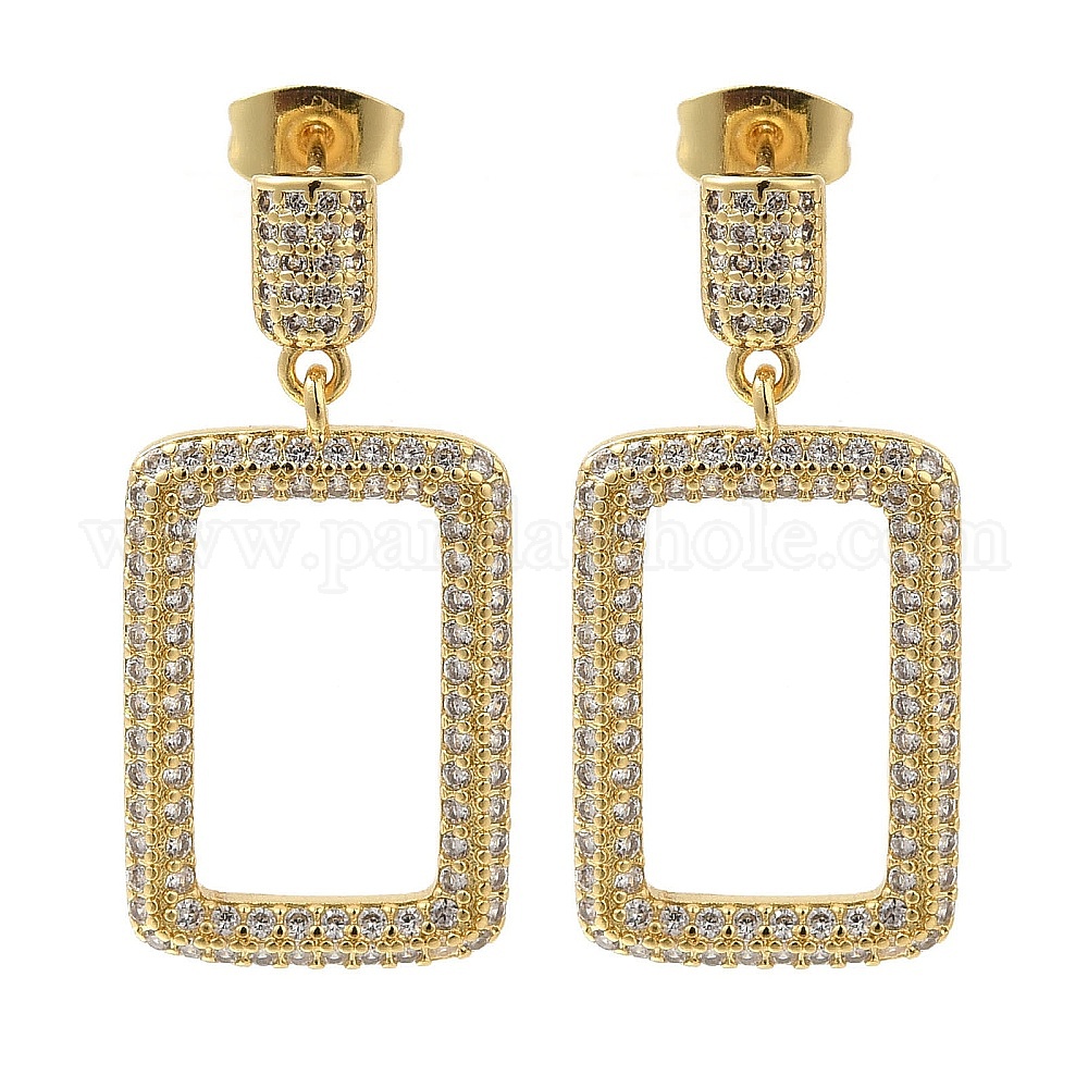 Серьги-гвоздики с прозрачным паве из латуни с кубическим цирконием, полый прямоугольник