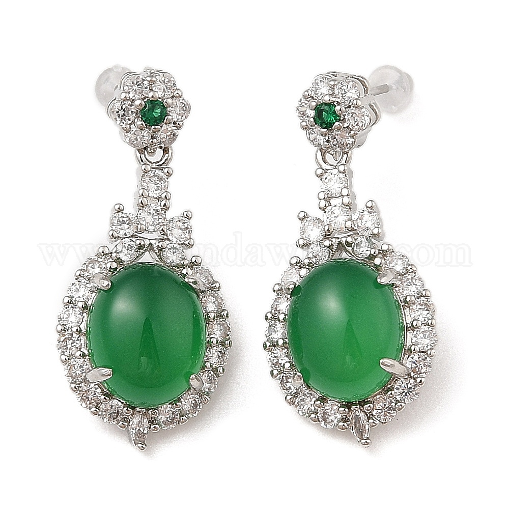 Серьги-гвоздики овальной формы из натурального халцедона