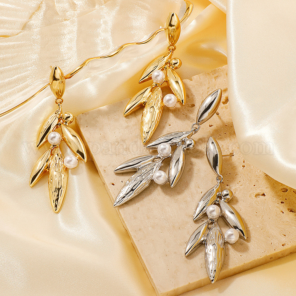 Милые и стильные латунные серьги-гвоздики в форме листьев, с имитацией жемчуга