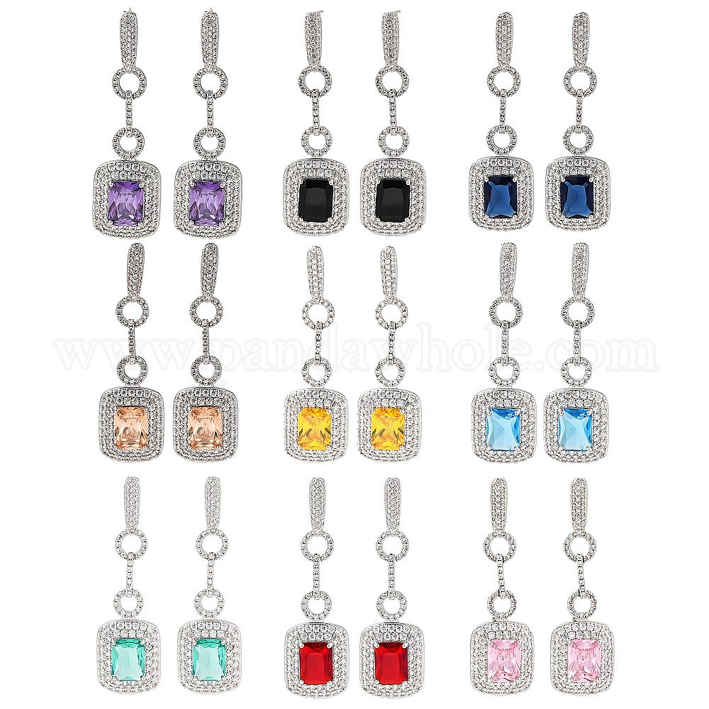 Латунь микро проложить кубический цирконий болтаться серьги стержня, прямоугольные, платина
