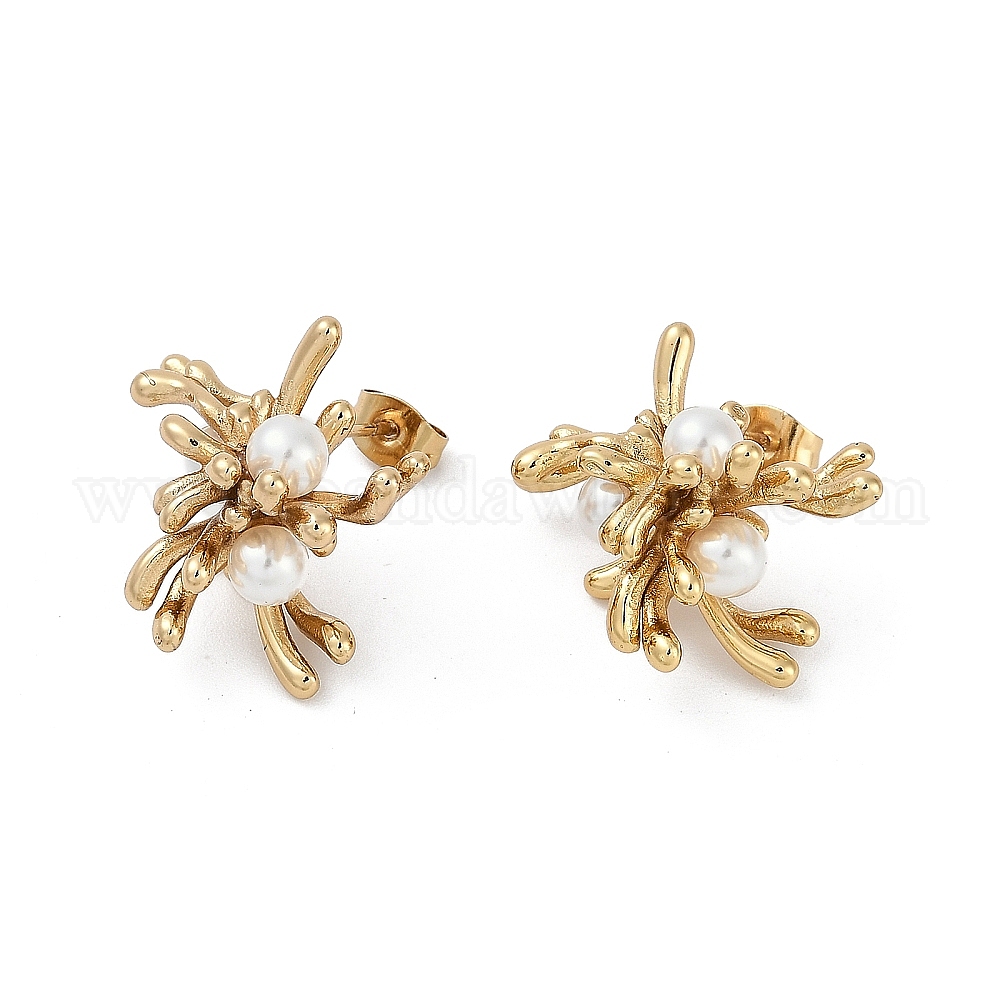 Ионное покрытие (ip) 304 серьги-гвоздики из нержавеющей стали с кораллами, с пластиковой имитационной жемчужиной