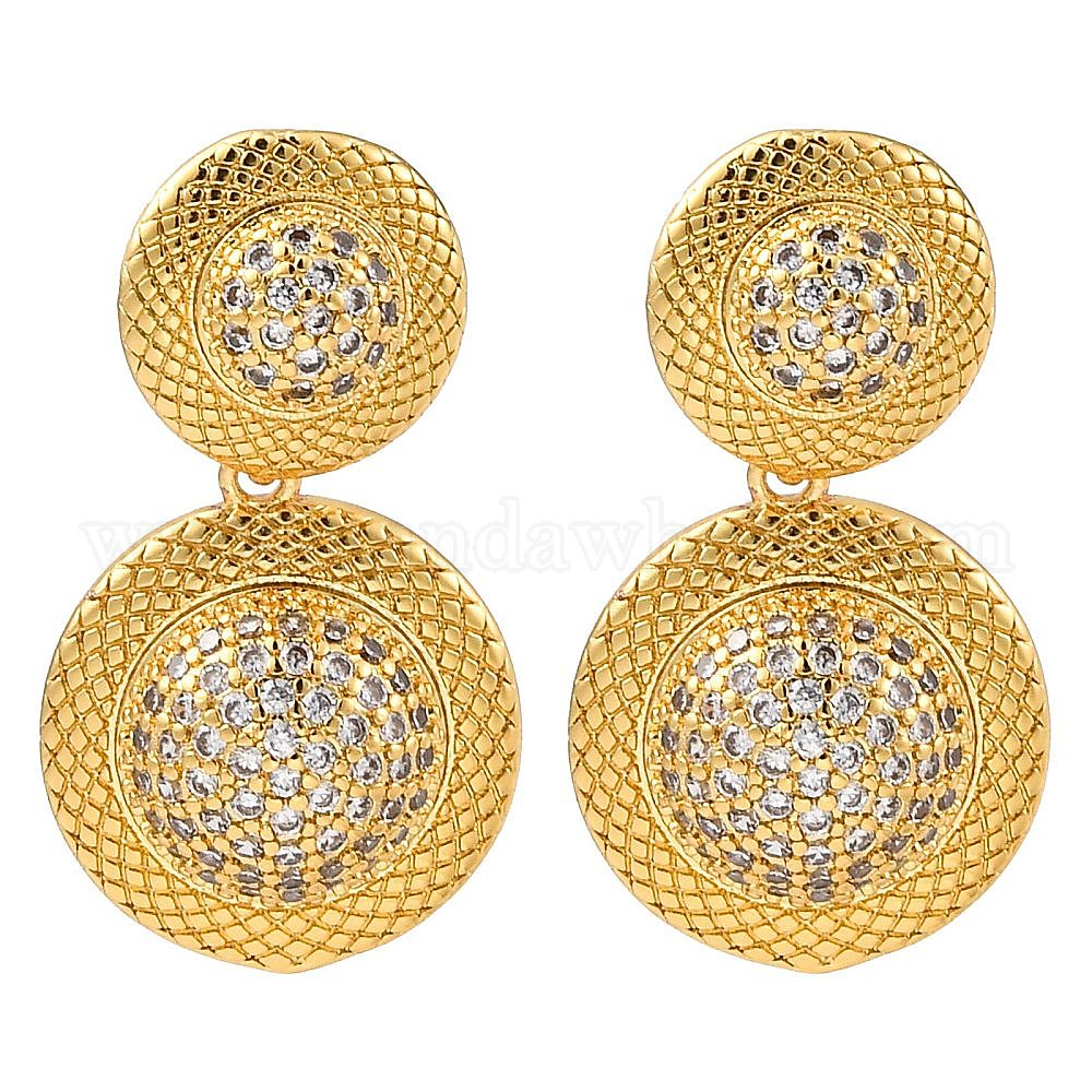 Серьги-гвоздики с покрытием из латуни и прозрачным кубическим цирконием, плоско-круглые