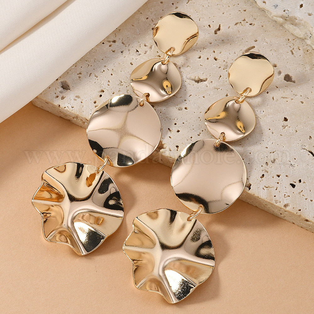 • Золотой Преувеличенные круглые металлические длинные висячие серьги-гвоздики, золотые, 100x32 мм
