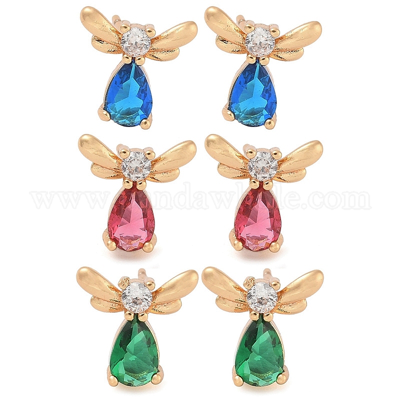 Серьги-гвоздики из латуни с кубическим цирконием, слеза с крылом, долговечный, шампанское золото