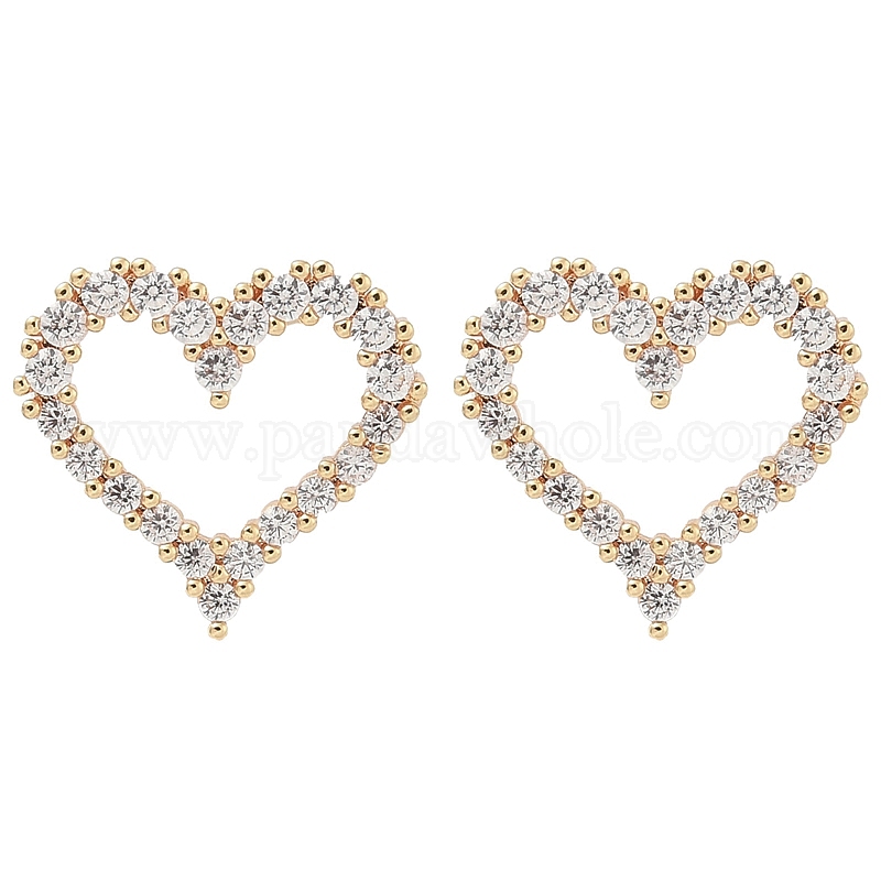 Серьги-гвоздики в форме сердца из латуни с прозрачным кубическим цирконием, долговечный (02YNHT)