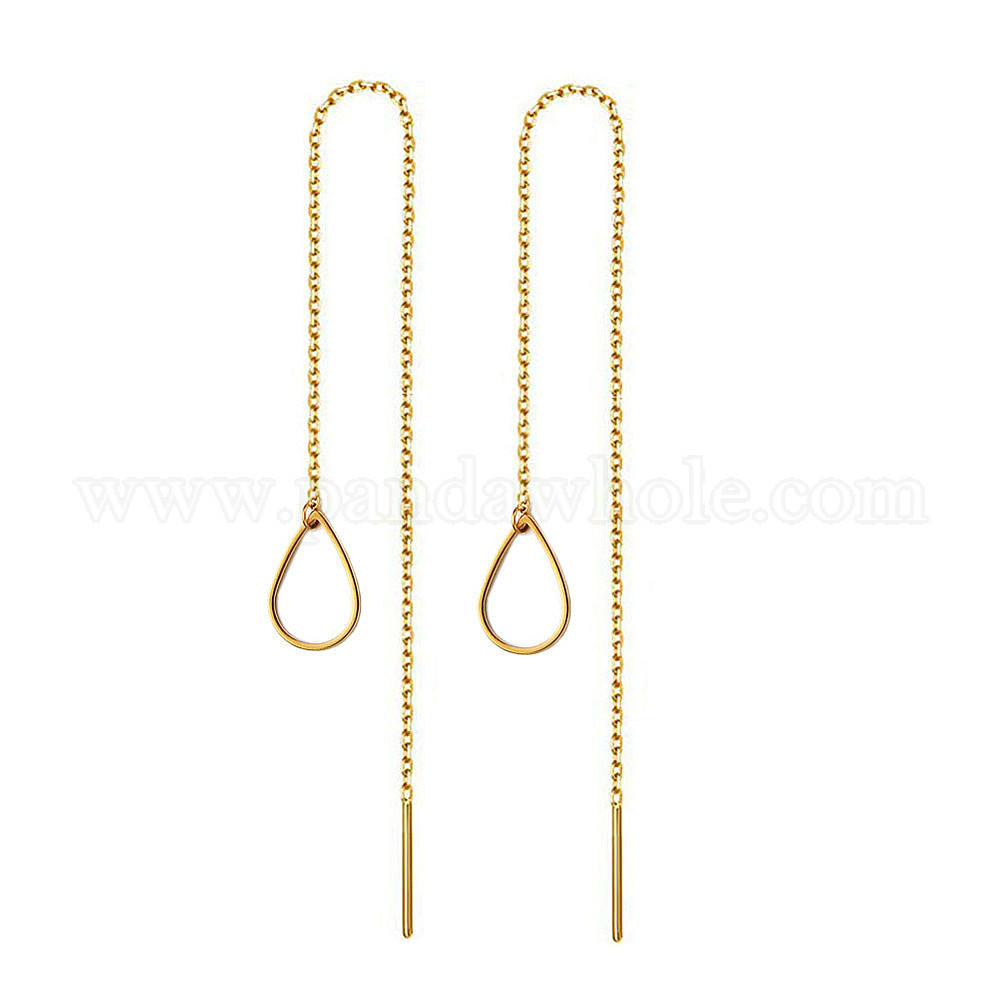 • Золотой Нить для ушей из нержавеющей стали для женщин, длинная цепочка с каплей, золотые, 80 мм, слеза: 16 мм
