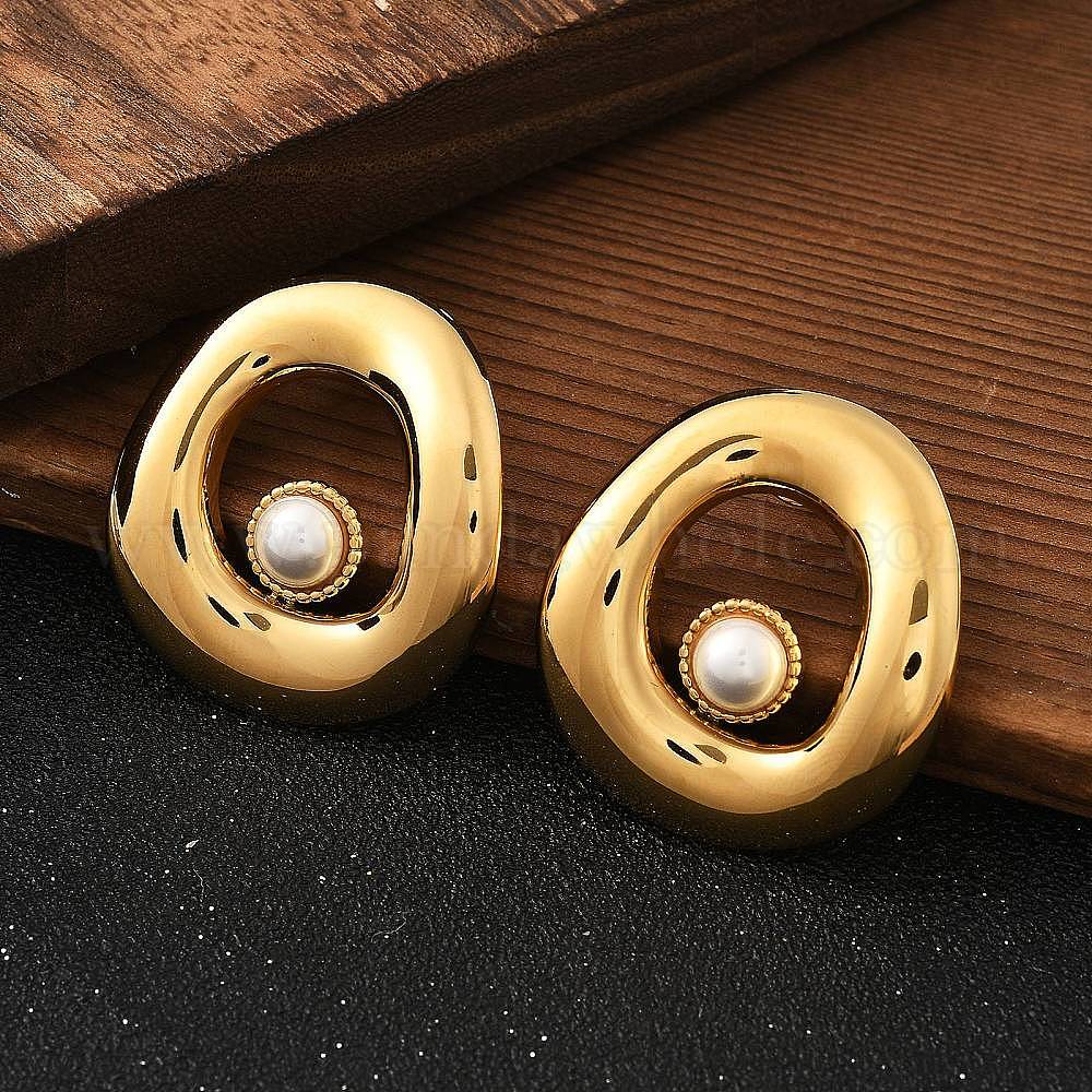 304 овальные серьги-гвоздики из нержавеющей стали, с имитацией жемчуга