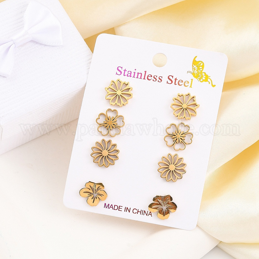 304 комплекты сережек-гвоздиков из нержавеющей стали, цветок